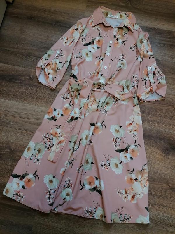 Платье в размере Л Длина 115 см. Пог 45 см. Талия на резинке под пояс с карманами. Рукав 3/4 длины