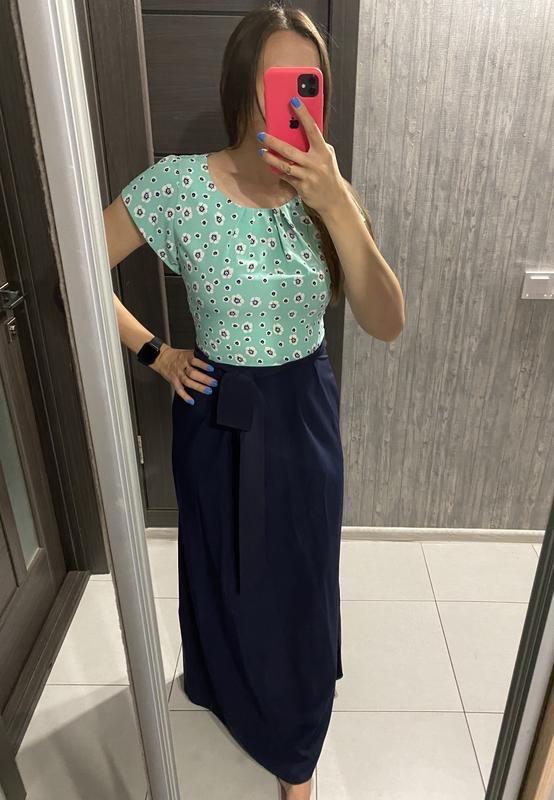 Красивое и самое главное очень удобное платье (тянется) выполнено из легкой качественной ткани, сзади молния, есть съемный пояс. 70%- хлопок 30%- вискоза На фото рост 165см Наделось всего 1р