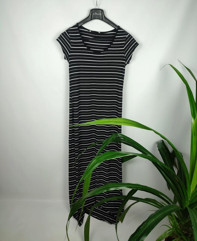 продам отличную женскую очень долгую, легкое платье в черно - белую полоску в размере L. Замеры: длина платья 145см. грудь 47см. бедра 50см. плечи 40см. Ткань вискоза.