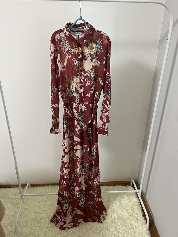 Бордова сукня в квіти з шифону, є декілька затяжок, при носінні не видно, в ціну враховано.