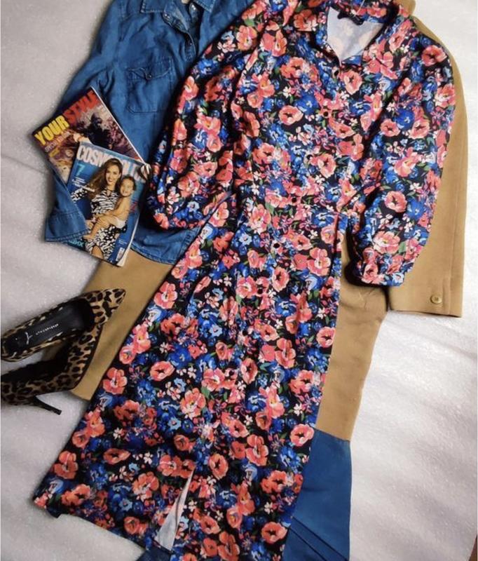 Плаття в квітах рукава фонарики міді довге плаття рубашка