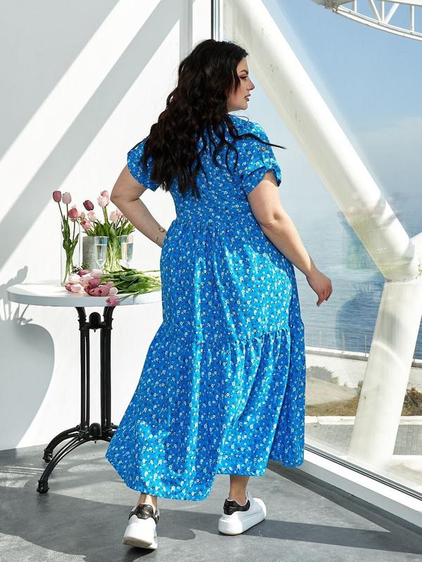 ВЕСНА - ЛЕТО Модель#AL/V& 1240 Платье свободного кроя ярусное с двумя воланами. Цена: 680грн ❣ Размер: 48-50 и 52-54 Ткань: софт Цвет: красный, голубой, зелёный в мелкий цветок. Замер: 48-50 ОГ 104-110см ОТ под грудью 110см ОБ до 120см учитываем что юбка свободного кроя. Длина рукава 21см Длина изделия 125см Замер 52-54 ОГ 110-116см ОТ под грудью 116см ОБ до 130см учитываем что юбка свободного кроя Длина рукава 23см Длина изделия 130см Параметры модели Рост 170см Грудь108см Талия 85см Бедра 120см