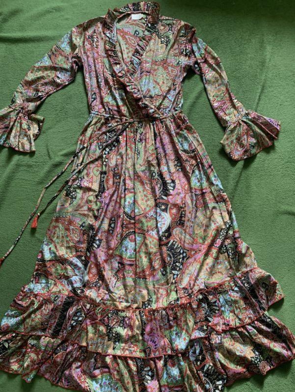Новое, ткань в виде шелка, с золотым принтом-на фото невозможно отразить. Легкое, ткань переливается, богатый и роскошный вид! Размер T2 Длина-138 ПОГ-56 Рукав-63 Плечи-44 Без картонных бирок