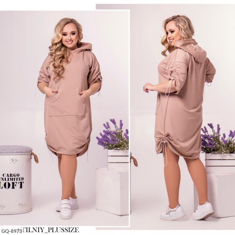 Сукня GQ-8976 Размеры: 48-50, 52-54, 56-58, 60-62, 64-66 Тканина: двох-нитка. Цвета: черный, красный, бежевый, марсала, хаки, ментоловый, джинсовый. Длина платья: 101,102,103,104,105 см. Длина рукава: 49, 50, 51, 52, 53 см. Обхват рукава: 43, 45, 47, 49, 51 см. Замеры готового изделия: 48-50 ог 108 от 110 об 116 52-54 ог 116 от 118 Про 124 56-58 ог 124 от 126 Про 132 60-62 ог 132 от 134 Про 140 64-66 ог 140 от 142 Про 148 Платье в спортивном стиле с капюшоном, из трикотажа двухнити (растяжимость Средняя). Силуэт свободный, прямой. На передней полочке обработан карман»кенгуру". Линия плеча спущена, рукав длиной чуть ниже локтя, может короче с помощью резинки, продетой в кулиску. Внизу, по боковым швам платья кулиски с резинками.ск3.Не надавливайте на кнопку Купит, технические проблемы подписывайтесь..ждю)