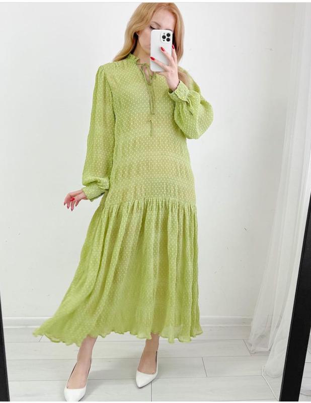 зелене плаття розмір 10uk (S/M) поліестр напівобхват: груди-50см талія-вільно стегна-вільно рукав-65см довжина плаття-130см