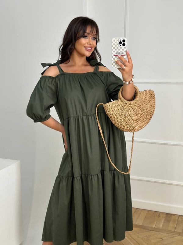 Номер: 2077 Тканина: бавовна (бавовна) Колір: синій електрик, хакі Розмір: 48-52, 54-58 Примітка: сукня з бавовняної тканини бавовна, фасон овер сайз. Легкий і невагомий крій з воланами, верх сукні на резинці, є функціональні шлейки, які можна відрегулювати під себе зав'язавши на потрібний розмір.