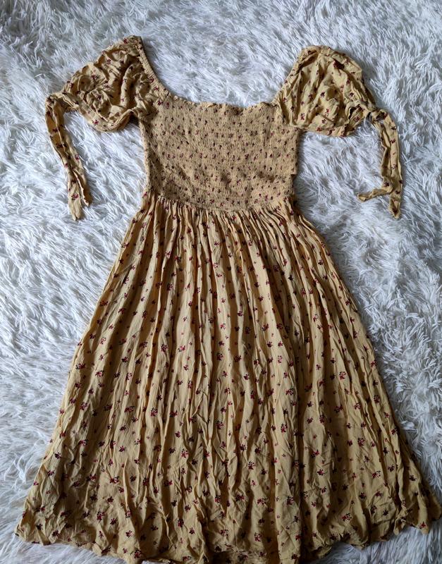 Длинное платье в цветочный принт со спущенными рукавами