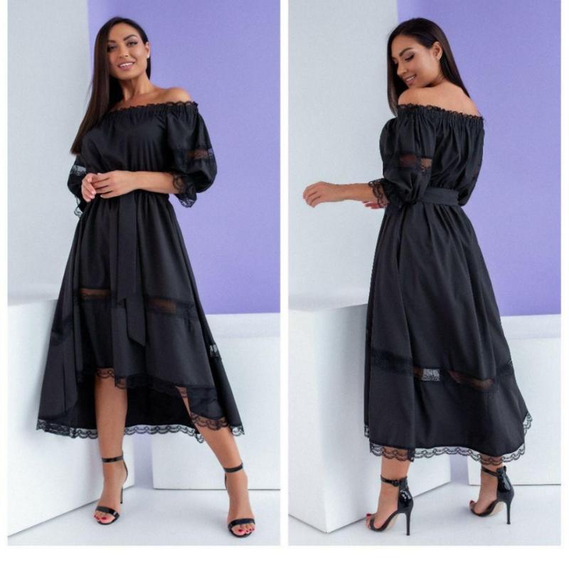 Ошатна чорна асиметрична сукня з мереживом і відкритими плечима 48-50 ОГ 108 ОТ 66/116 ОБ 160 армані коттон,