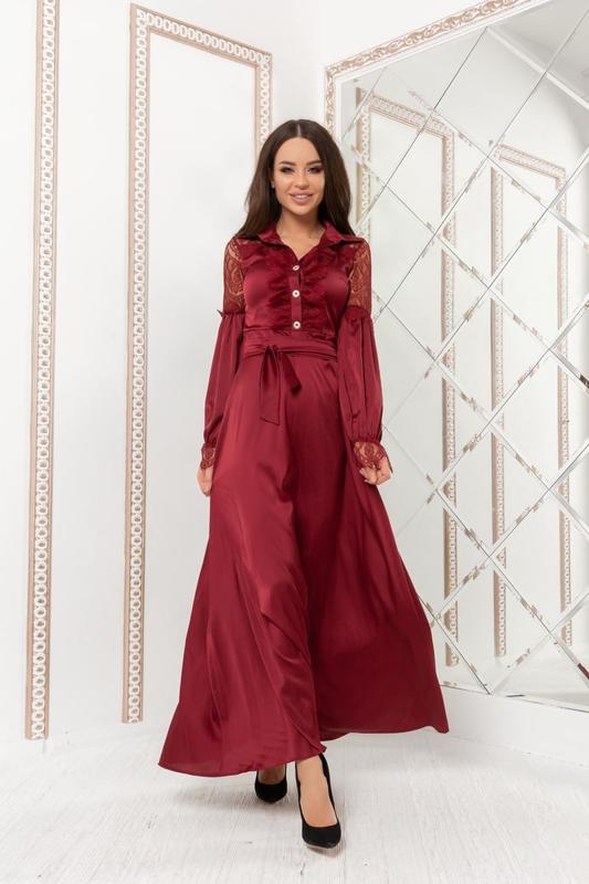 Отправка в день заказа (если заказ до 16.00)!! Длинное романтичное платье с рукавами насыщенного бордового цвета. Перед, плечи и рукава украшены нежным кружевом. Легкая и невесомая благодаря ткани- шелк армани. Имеет пасок. Она непременно станет Вашей любимой! Осталось только один размер- S.