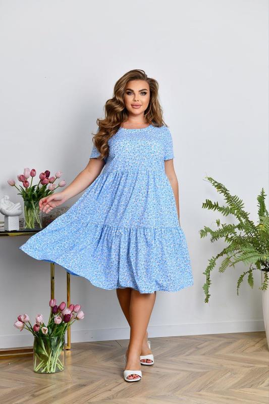 Сукня НОВИНКА В НАЯВНОСТІ код #ФИ₽ 3660 Ціна 690 грн❣ Тканина: софт. Колір: ліловий, малина, синій, блакитний, пудра. Розміри: 52-54, 56-58, 60-62, 64-66. Довжина сукні: 104, 107, 110, 113 см. Обхват рукава: 41, 43, 45, 47 см. Довжина рукава: 16, 17, 18, 19 см. Довжина ліфа: 41, 42, 43, 44 см. Заміри готового виробу: 52-54 ОГ 112 ОТ 106 ОС 160 56-58 ОГ 120 ОТ 114 ОС 170 60-62 ОГ 128 ОТ 122 ОС 180 64-66 ОГ 136 ОТ 130 ОС 190 Легка та жіночна літня сукня із софту (тканина розтяжності не має). Сукня складається з ліфа та спідниці у два яруси. Виріз горловини круглий, рукав короткий. Кишень та застібок немає. Ця сукня - ідеальний образ на літні спекотні дні.