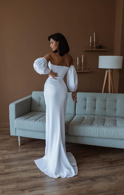 ▪ Розмір: С ▪ Колір: білий ▪ Тканина: королівський Атлас Lux ▪ Якість пошиву Premium ▪ Максимально Ідеальна посадка, корсетний крій, підкреслює фігуру, рукав зйомний