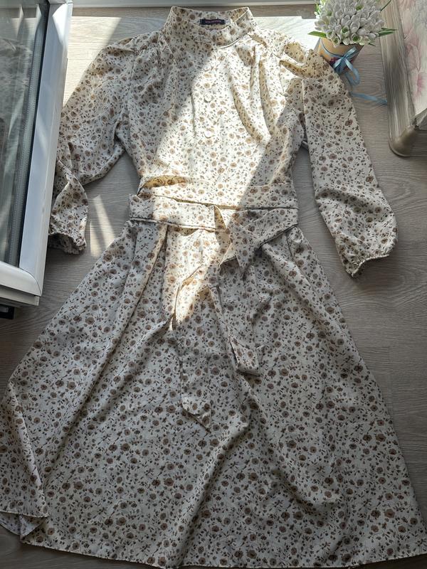 Трендовое платье миди Нежный цвет, на талии пояс По низу идет волан, на спинке пуговица Тканина:софт