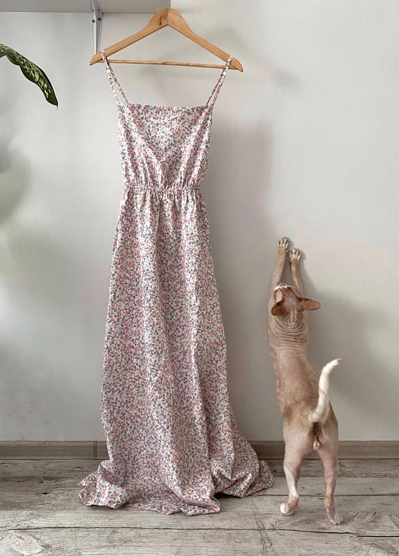 Нове плаття, відшите на замовлення. Не вдягалось жодного разу. Плаття на бретелях, ззаду вони ідуть навхрест, спина відкрита. Пояс на резинці.