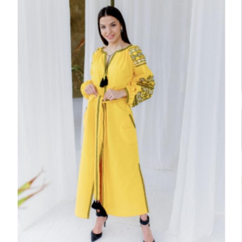 Сукня вишита на домоткнній тканині. Склад: 40% льону, 30% бавовни,30% віскози. В наявності розмір XL.