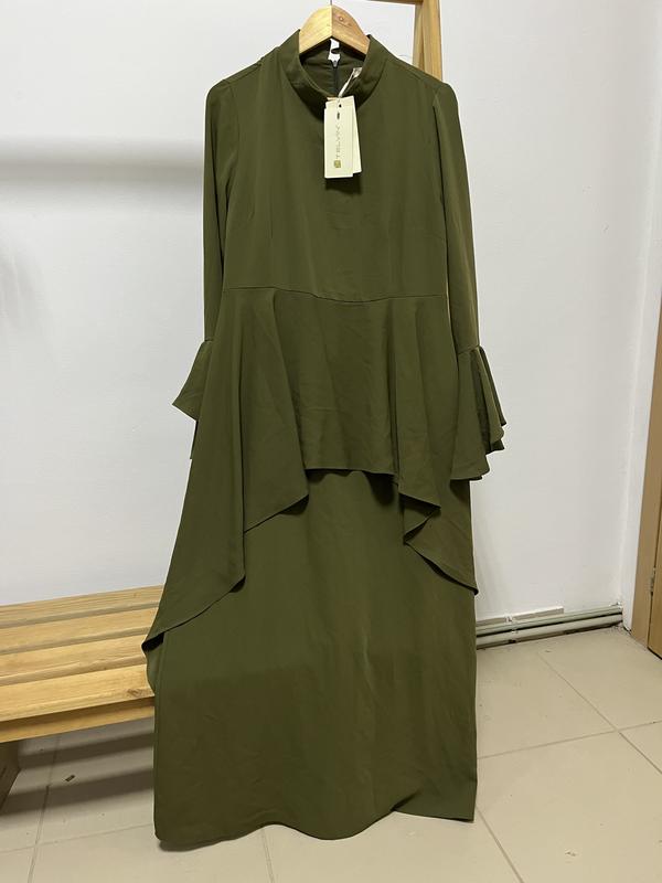 Строгое женское платье оливковое платье в пол длинное платье большой размер платья на длин...