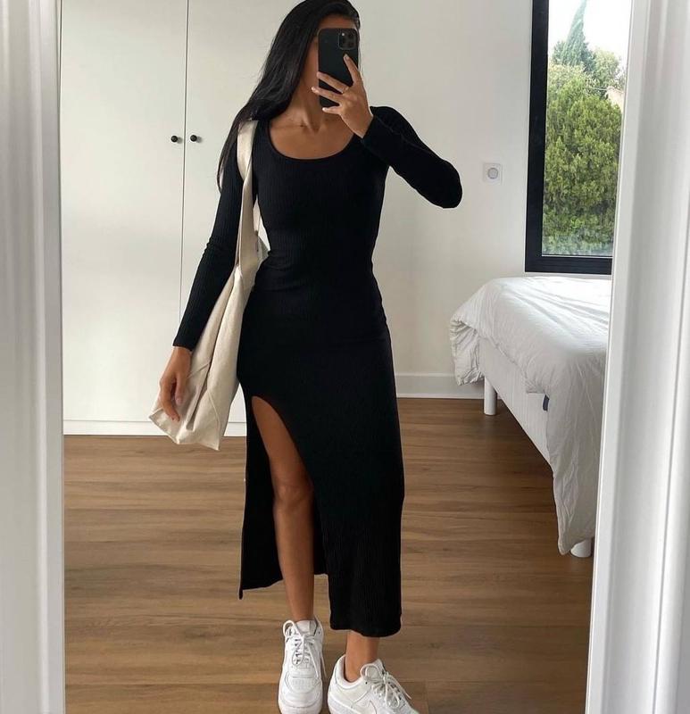 Довга сукня рубчик з розрізом ⚡лідер продажів ⚡