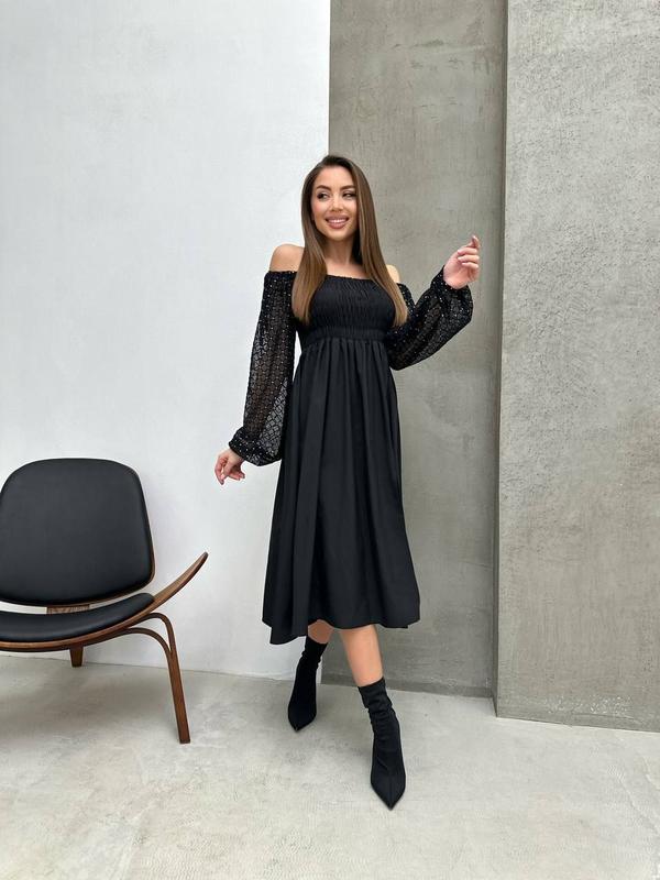NEW NEW. NEW Мод#IM 130 Розмір:42-44,46-48,50-52 Тканина:софт +сетка Сукня ,яка буде вам надавати впевненість в собі і в якою ви будете стильно виглядати .Довжина міді .На грудях резинка .Можна одягати зі спущеними та з піднятими плечиками .Супер якість ,по супер ціні. Ціна:720 грн❣