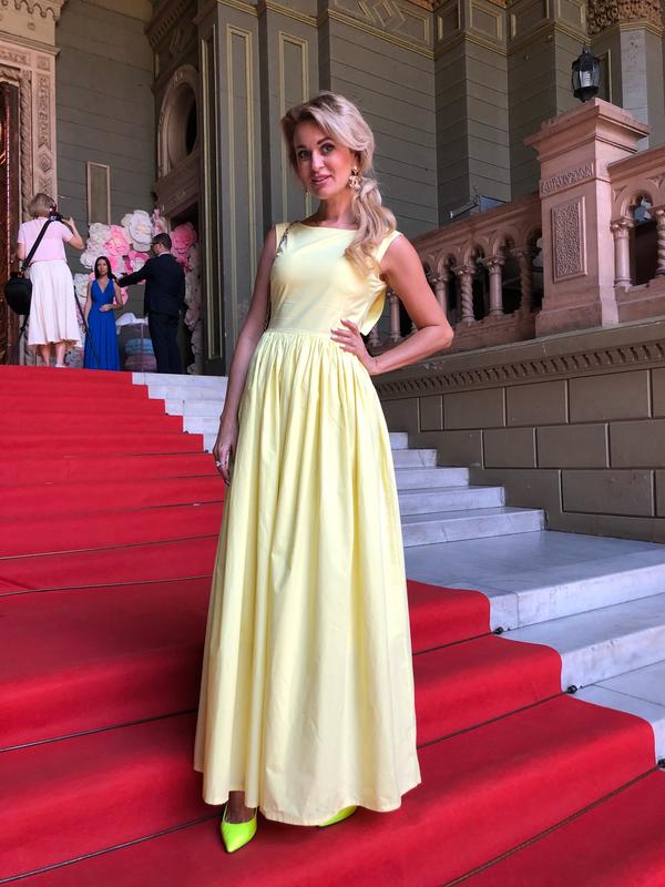 Позаду спинка дуже гарна з бантом Якість плаття шикарна