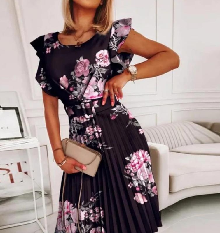 Чорна сукня з спідницею-плісе в рожеві квіти