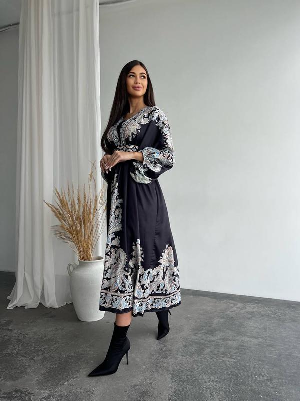 очень красивое платье с орнаментом застегивается не а пуговицы, в комплекте пояс р 44-48