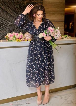 Сукня шифонова Довга 05748 Цена 1000грн Легкое воздушное платье из шифона с подкладкой. Надевается на запах, этим идеально садится по фигуре. Длина 125 см. Длина рукава 60 см. Можно дополнять образ стильным кожаным поясом. цена которого 250грн с шнуровкой или 300грн с застежками пряжками Размеры: 48-52, 54-58