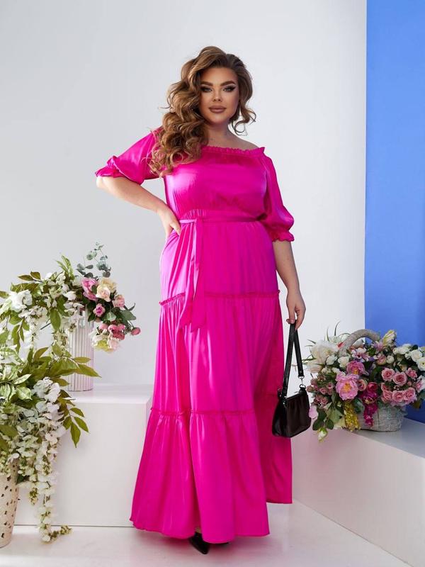 №230 Плаття, Сукня. Тканина; армані. Вільний силует. Гумка по талії. Забарвлення; молоко, чорний, трава, малина. Ціна 1280грн Розміри; S-M; L-XL; 2XL-3XL. S-M ОБ-Т – 66 см L-XL ОБ-Т – 70 см 2XL-3XL Об -T - 74см Довжина рукава-38см. Спідниця Максі. По бічному шву-128см По талії гумка тягнеться + 3-5см