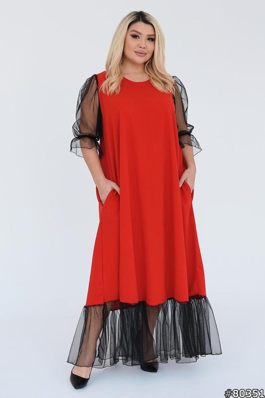 Тканина:кріплення-дайвінг + іврожетка Розмір:,50-52,54-56,58-60 колір; чорний, червоний 50-52 ОГ — 114 см, довжина рукава — 45 см, довжина виробу — 140 см із сіткою, довжина 112 см, ОС — 180 см 54-56 ОГ — 122 см, довжина рукава — 45 см, довжина виробу — 140 см із сіткою, 112 см до сітки, ОС — 188 см 58-60 ОГ — 130 см, довжина рукава — 45 см, довжина виробу — 140 см із сіткою, 112 см до сітки, ОС — 196 см Змійок і застібок немає Заміри зняті за виробом лб