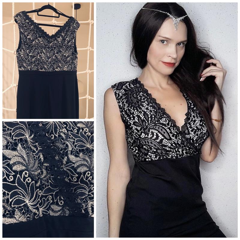 Довга сукня з трикотажу, верх мереживо На талії збірка, вдало підкреслить фігуру, приховуючи можливі недоліки Розмір 46 європейський Нова