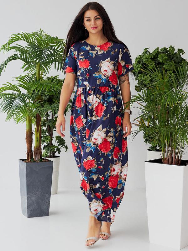 Довга сукня size+ в квітковий принт 48-54 р.🍒🍓🌶