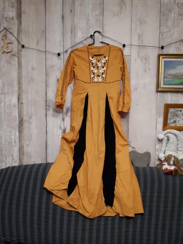Довжина 135 спідниця 103 ллечі 37+ талія завишена пот 44-47 пройма 24+ пог 49-51 рукав 57 ширина 16 тканина легка тягнеться слабо колір насичений дивись інші мої пропозиції на сторінці останнього лота немає