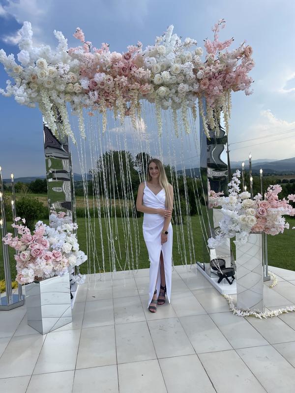 Сукня з королівського атласу,не просвічується. Одягнута один раз,чудово підійде на ваше свято