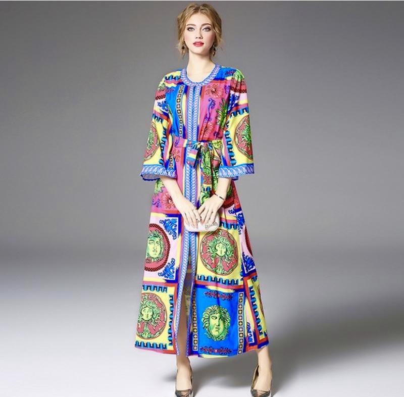 Неймовірна яскрава сукня з гладкої тканини, принт, є пасок Плечі 40 Рукав 49 розширений до низу Груди 100 Бедра 112 Низ 148 Довжина 132