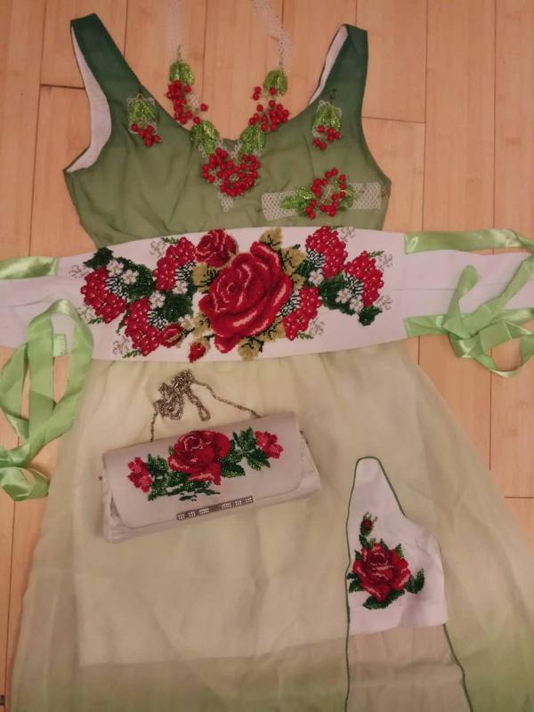 Оригінальна вишита сукня з поясом. (В комплекті є сумочка та біжетерія з бісеру)