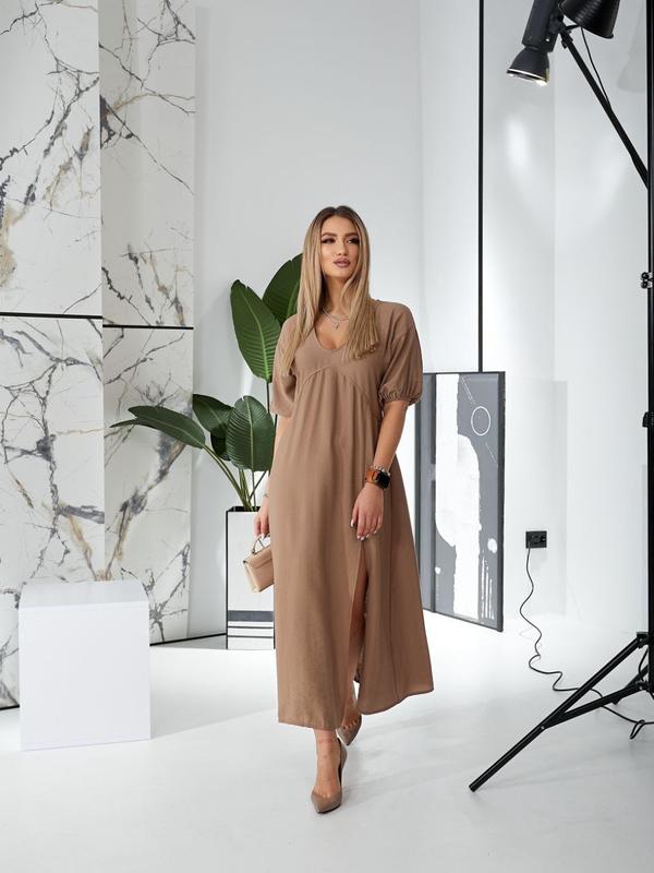 Красива натуральна сукня🌸 як на кожен день під кеди, так і під каблук і на якусь подію🥰 🔥Новинка 🔥 Сукня Модель 812 🔸Тканина: класна люкс»жатка-льон « Сукня міді з легкої тканини жатка-льон. Модель з рукавом -ліхтариком та ефектним v- образним вирізом на грудях, також є розріз на нозі, який підкреслює красу ніг .Розкльошоний крой спідниці, створює романтичний і легкій настрій. Під дану сукню підійде різне взуття! 🔸Розміри: 42-44,46-48 🔸Колір: бежевий , блакитний, малина, мокко, чорний 🔸Ціна: 755 грн