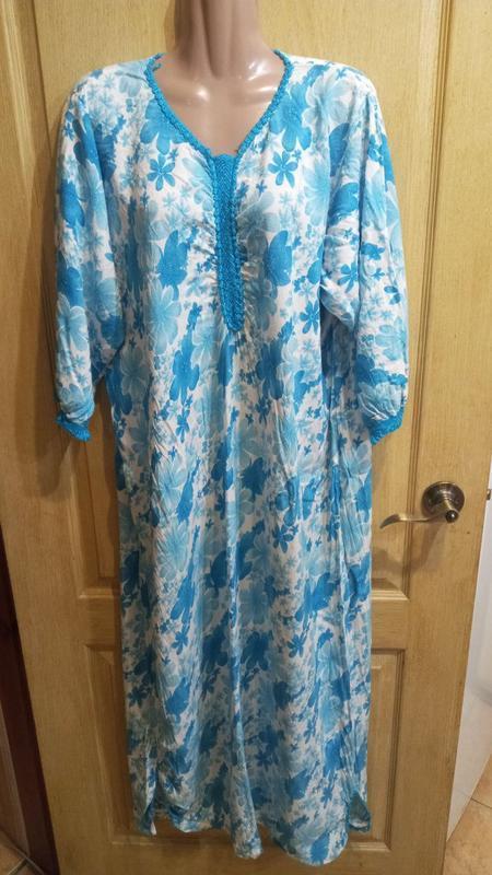Симпатичне плаття зі стильним принтом. Тканина легка до тіла, без підкладок. На літо чудова штучка, або ж для дому. Розмір євро десь до 50, але орієнтуйтесь також по замірах. Заміри: плечі 43 см, рукав від плеча 42 см, ПОГ 57 см, ПОТ 63 см, довжина 131 см. ДИВІТЬСЯ ІНШІ МОЇ ОГОЛОШЕННЯ. МОЖЕ БУТИ САМЕ ВАША УЛЮБЛЕНА РІЧ ПОКИ ЩО ЛЕЖИТЬ У МОЇЙ "ШАФІ"