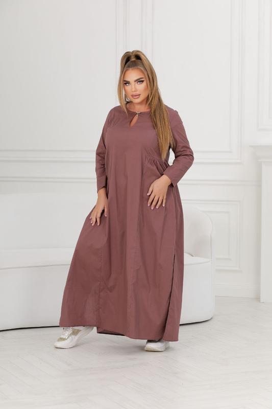 Платье длинное макси с брошкой свободное котон коричневое мятное батал прямое с длинными р...