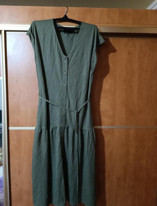 длинное платье, впереди застежка пуговки, низ волан, рукавчик отворот на пуговке, в составе вискоза,под поясочек