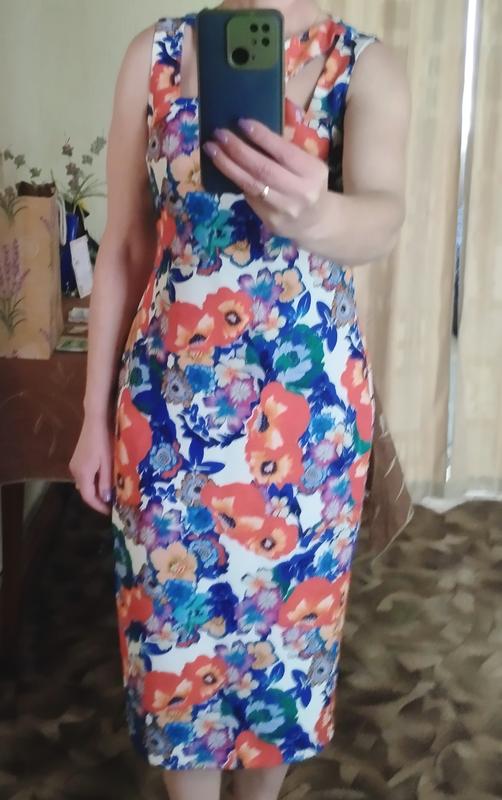 Літня сукня розміру 46/48, в ідеальному стані. Заміри: Пог - 47 см, тягнеться до 49 см, Пот - 41 см, тягнеться до 44 см, Поб - 52 см, тягнеться до 54 см, довжина - 115 см, позаду має невеличкий розріз, застібка позаду на блискавку.
