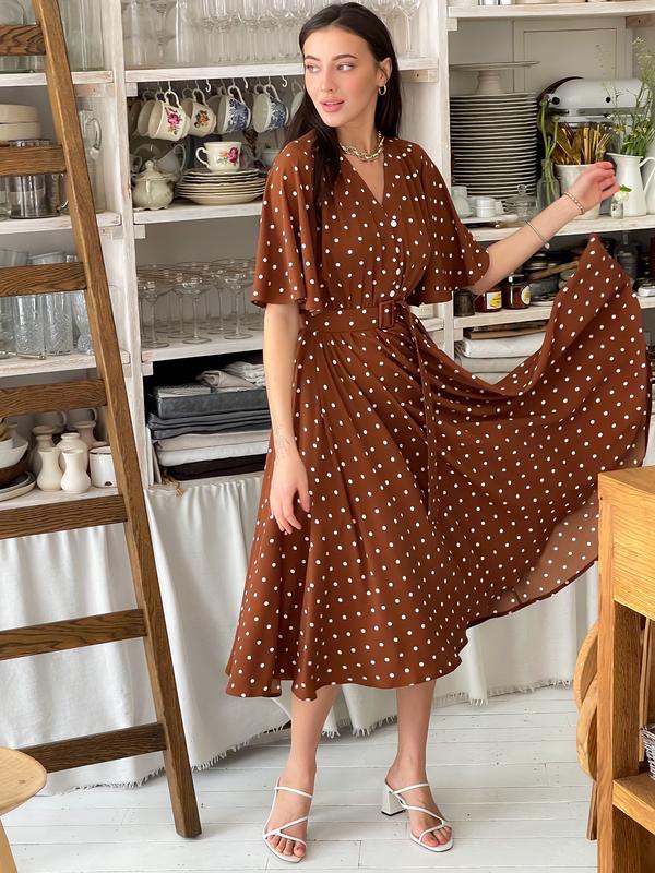 В ідеальному стані Колір : коричневий,як на фото Ткань: італійській креп «Mango” Розмір : S/m Довжина спідниці 80 см, довжина рукава 32 см. ОГ 100 см ОТ ( в розтягнутому вигляді ) 98 см На талії резинка,пасок у комплекті