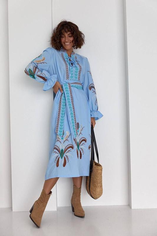 Сукня вишиванка в блакитному кольорі 💓💓💓 Дуже красива та жіночна • виробництво Туреччина • розміри S M L • тканина бавовна (80% бавовна, 20% полієстер)