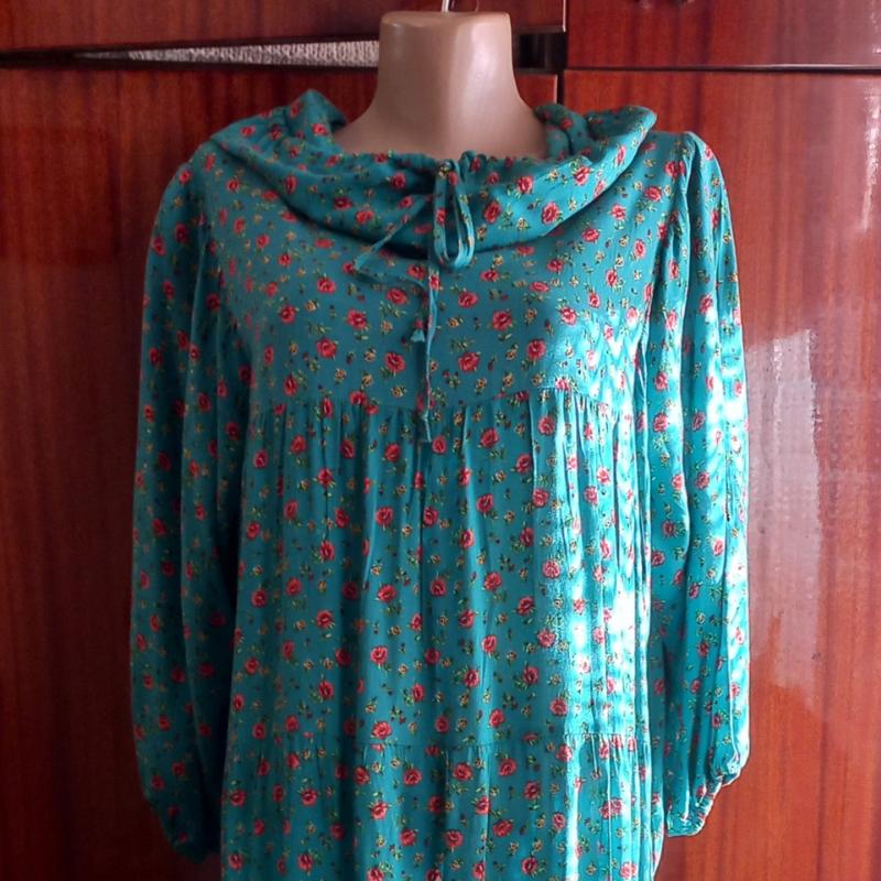 Длинное платье в стиле бохо, батал. с капюшоном и карманами.