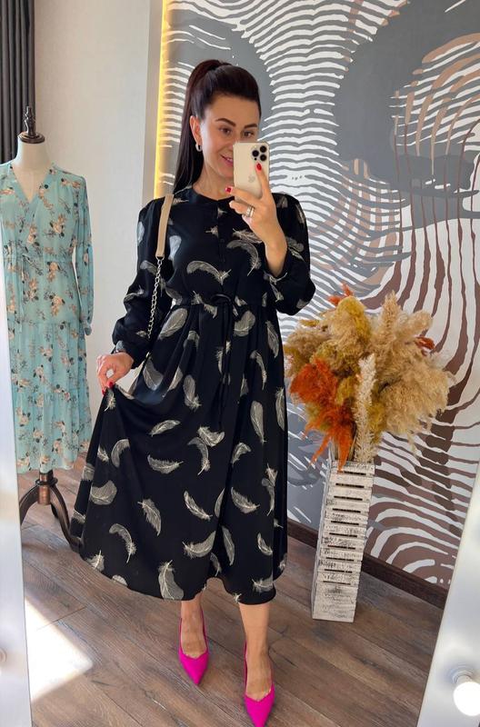 ТОВАР КЛАСУ ЛЮКС 👍 РОЗКІШНА СУКНЯ ДЛЯ УРОЧИСТИХ ЗАХОДІВ І НА КОЖЕН ДЕНЬ, ВИГОТОВЛЕНА З ПРИЄМНОГО ДО ТІЛА ЩІЛЬНОГО КРЕП АТЛАСУ З КРАСИВИМ МАЛЮНКОМ СУКНЯ ПРИТАЛЕНОГО СИЛУЕТУ, З ВИТОНЧЕНИМ КОМІРОМ СТІЙКА, НА ҐУДЗИЧКАХ СПЕРЕДУ, І ВШИТИМ ПОЯСОМ НА ТАЛІЇ, ВІЛЬНОЮ СПІДНИЦЕЮ (БЕЗ ПІДКЛАДКИ, НЕ СВІТИТЬСЯ) З КИШЕНЯМИ З БОКІВ СУКНЯ МАЄ ПРИГОЛОМШЛИВИЙ ВИГЛЯД, ВОНА ВІДМІННО ПІДКРЕСЛИТЬ КРАСУ ВАШОЇ ФІГУРИ І СТВОРИТЬ ГАРНИЙ НАСТРІЙ РОЗМІР ЄДИНИЙ 44-46 ДОВЖИНА 120 -122 СМ, НАПІВОБХВАТ ГРУДЕЙ 55-56 СМ, ДОВЖИНА РУКАВА ВІД ШИЇ 68-70 СМ КОД 0534 🍃