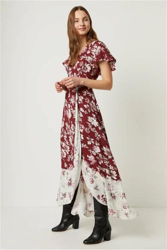 Бохо платье на запах french connection макси платье с цветочным принтом и воланом качество