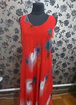 Легке, красиве забарвлення сукня, пог-65, піт-77, довжина — 139.Перед трохи коротший,зад довший.Плаття йде трапецією, на кльош.