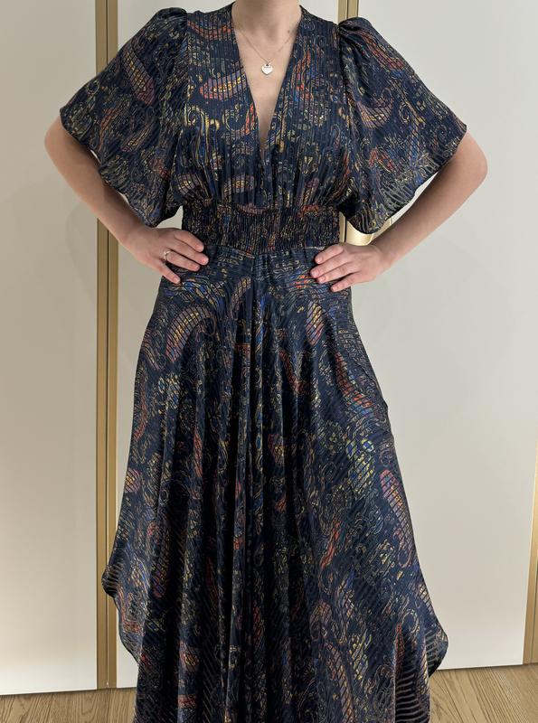 Сукня фірмове maje (по розміру 1), нове не вдягалось , на резинці на талії , основна тканина (57 % віскоза, 43% поліефір) .