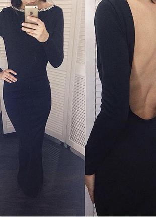 Длинное платье в пол, с вырезом на спине. Ручная вышивка бисером.