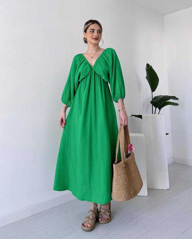 Новинка В Наявності ❤️ Сукня ♥️ 6️⃣Ціна: 689 грн‼️ 🔹Мод. 201 🔹Тканина: Муслін ( 100 % бавовна ) 🔹Розміри: 42-46, 48-52 🔹Кольори: зелений, малина , світлий беж