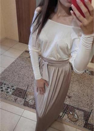 Ідеальна ніжна сукня куплялась на випускний тканина масло- дайвінг дуже гарно тягнеться є на талії резинка зверху зав‘язується пояском стан нової одягалась один раз