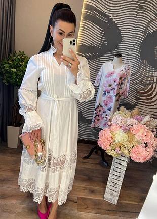 роскошное белое платье миди изысканного кроя, выполненное из высококачественного креп-котона и шикарного кружева, подойдет для множества мероприятий, будь то свадьбы или коктейльная вечеринка или же формальный прием платье приталенного кроя с отрезной талией, длинными рукавами с красивыми манжетами, оригинальным воротником-стойкой, украшенным нежным кружевом, небольшим вырезом и аккуратными защипами на груди, плюс эффектная широкая юбка внизу и пасок в комплекте, идеально будет смотреться на девушках с разными типами фигур платье нереально красиво смотрится, оно несомненно займет достойное место в вашем гардеробе и сердце размер 42- 46 длина 128 см, длина рукава от шеи 70 см, о г по изделию 94 см, длина от шеи до талии 39-40 см код 0589