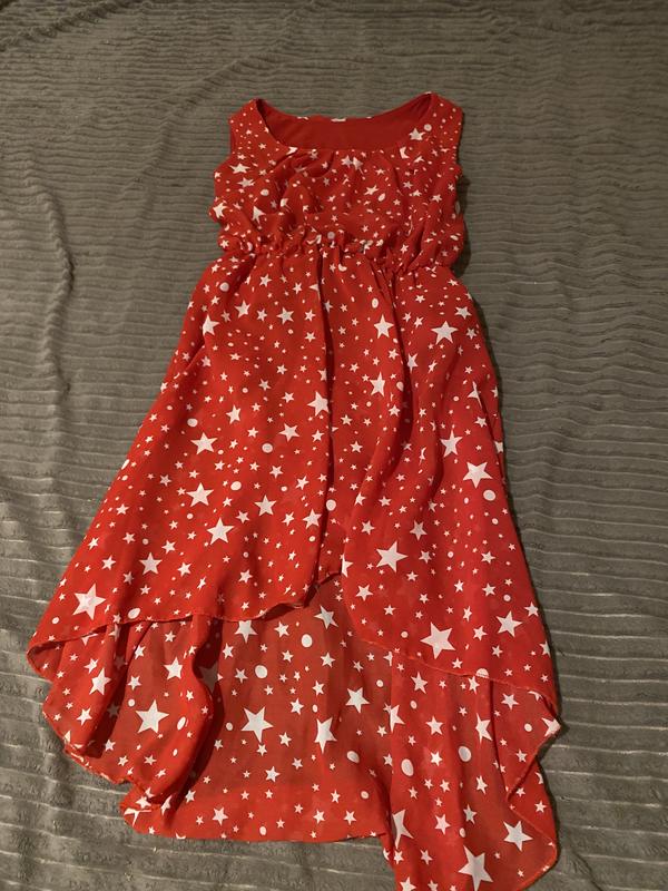 Червона сукня в зірочку, подовжена взаді, розмір с.